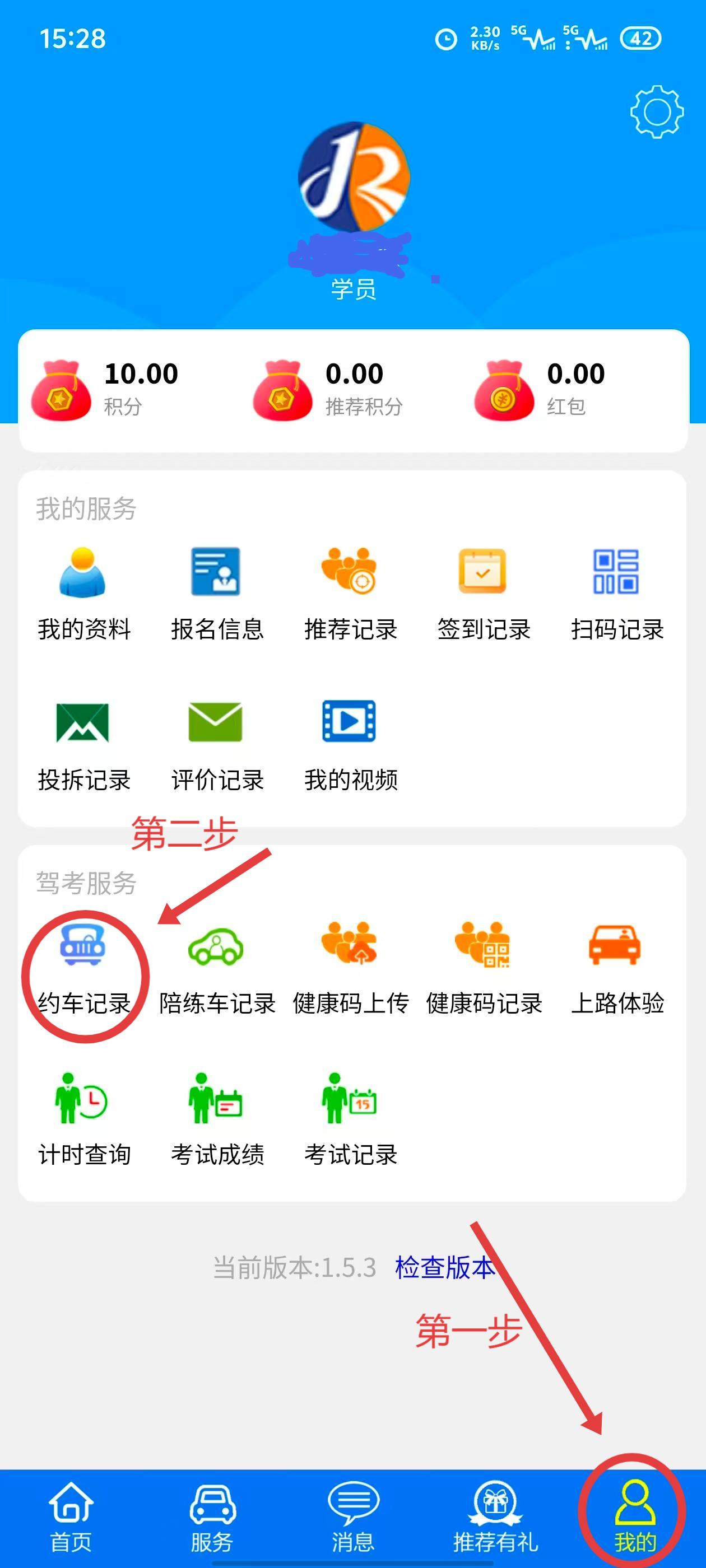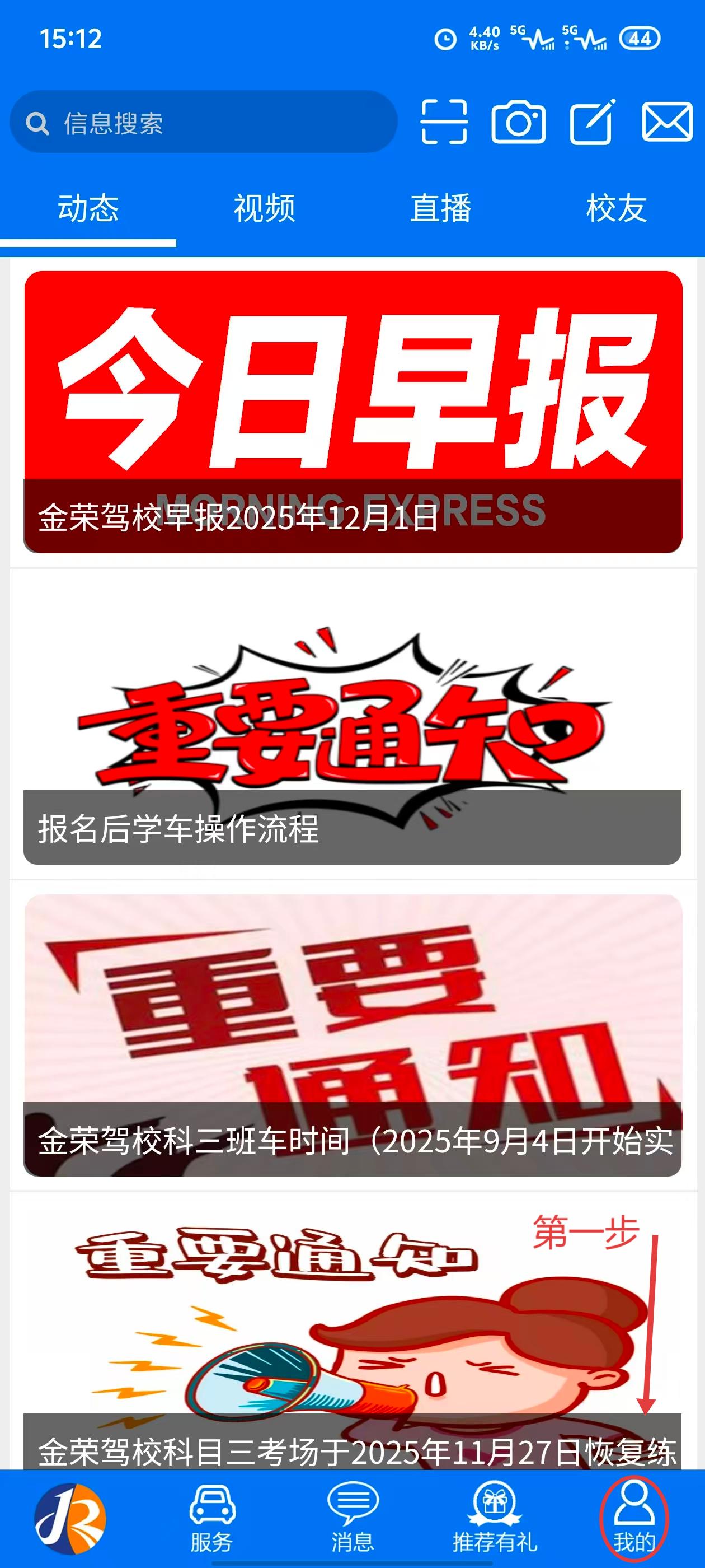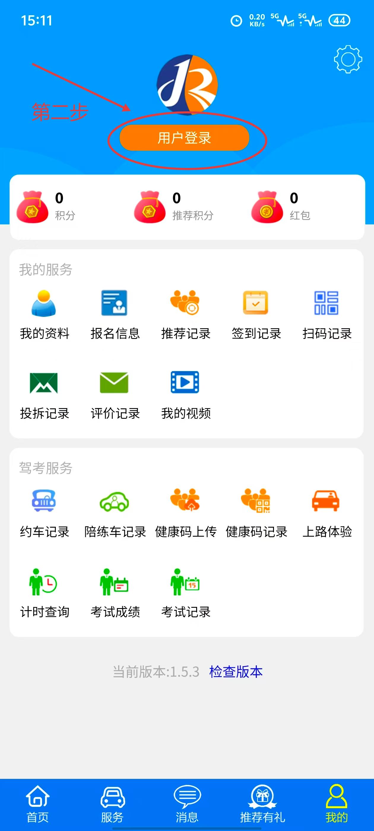 1.打开“金荣驾校APP”→我的→用户登录