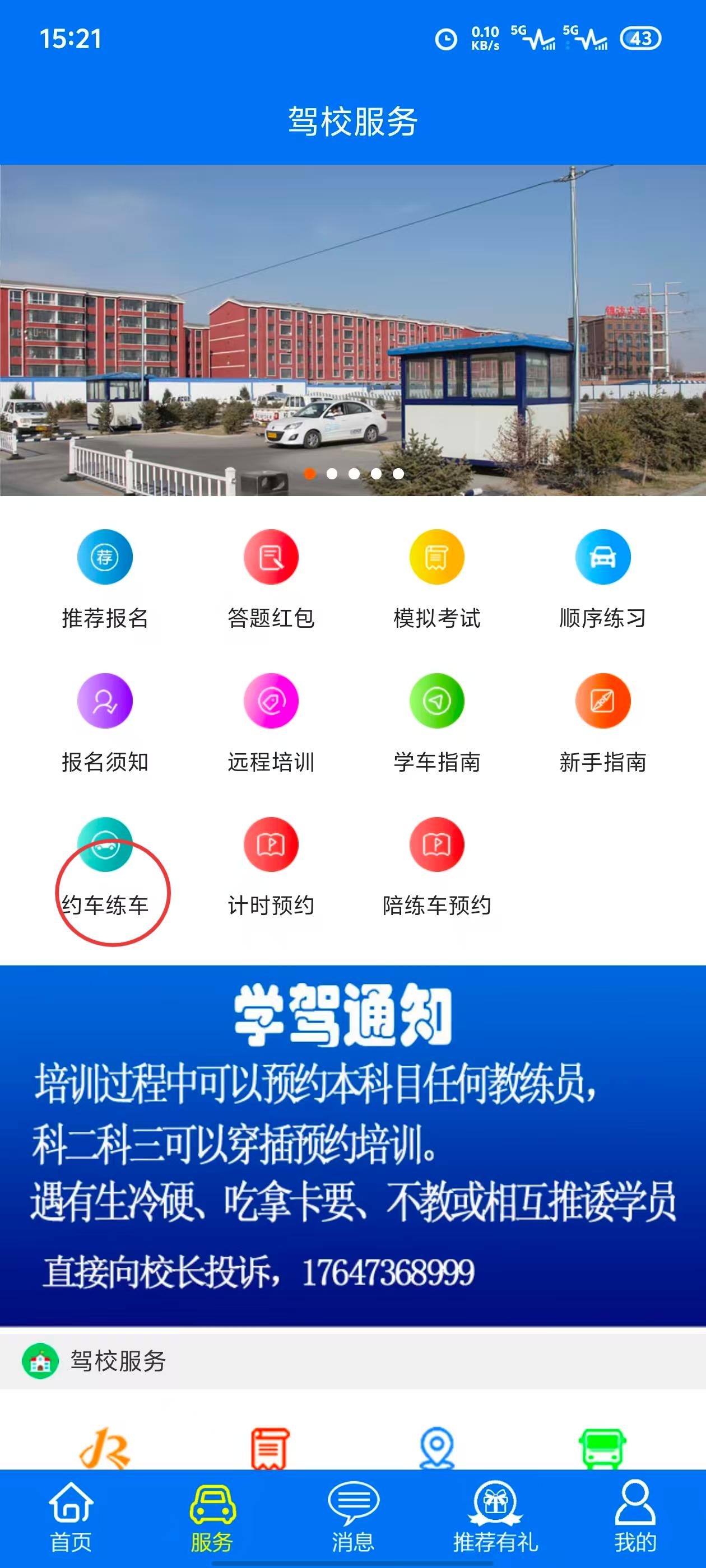 4.点击“预约练车”
