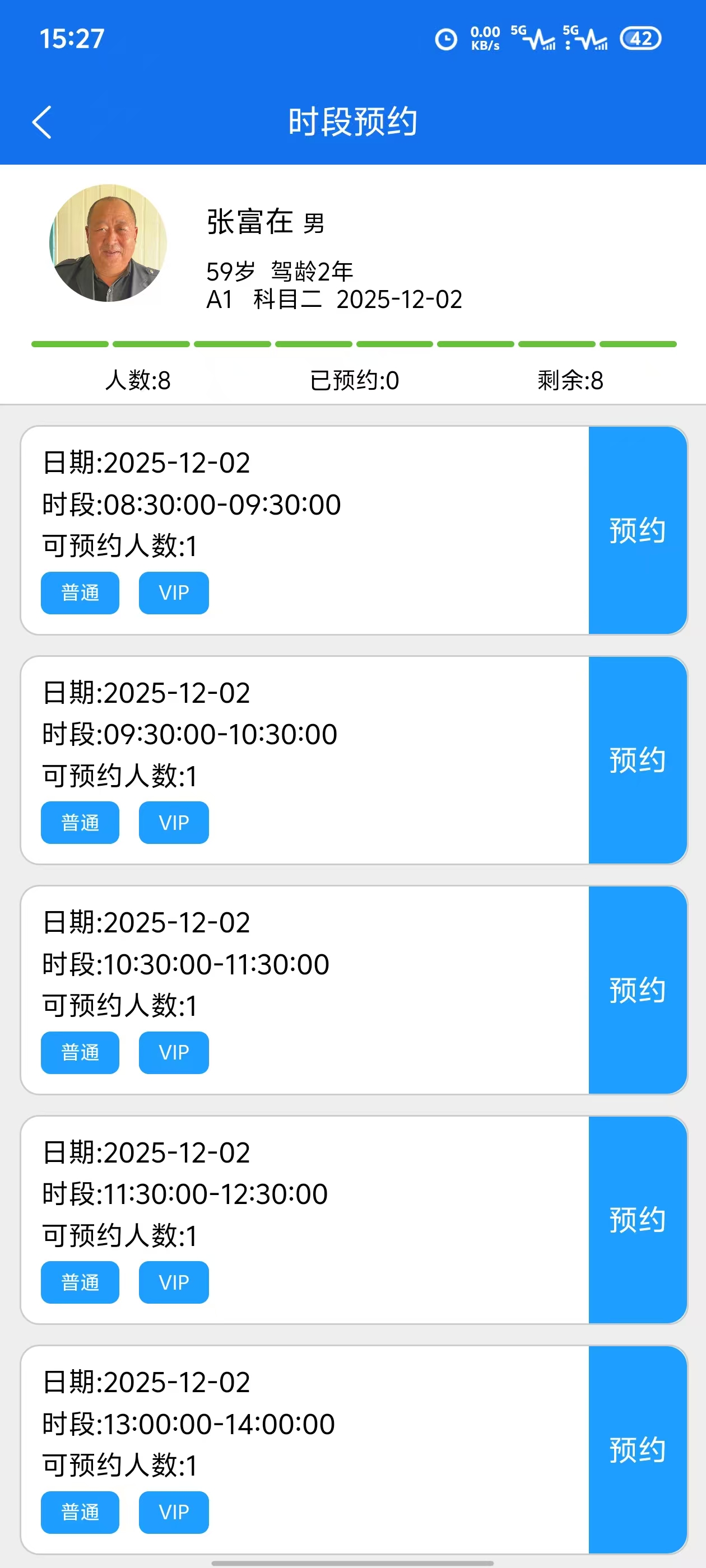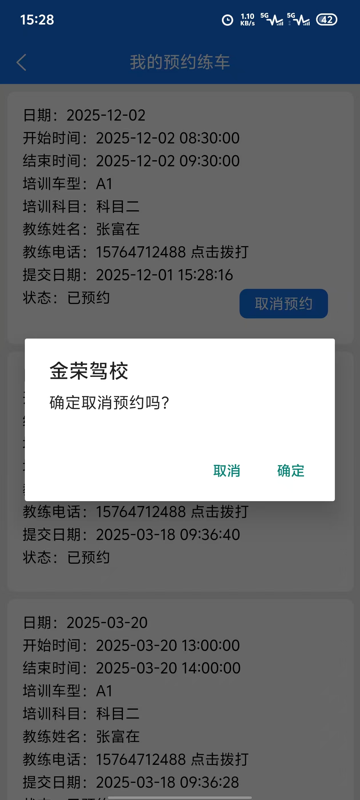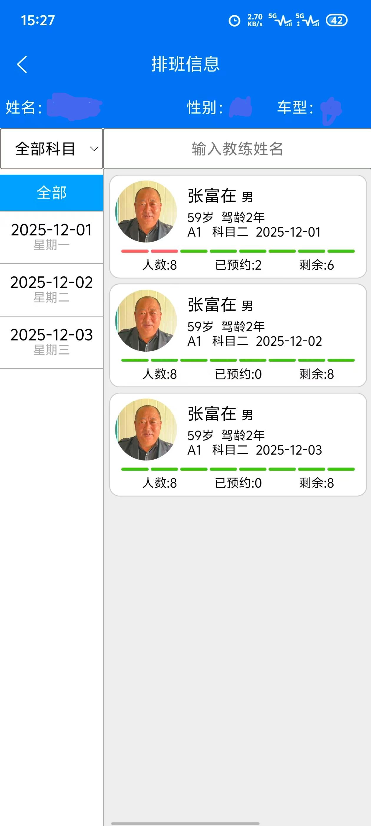 5.选好教练及练车时间,点击可预约